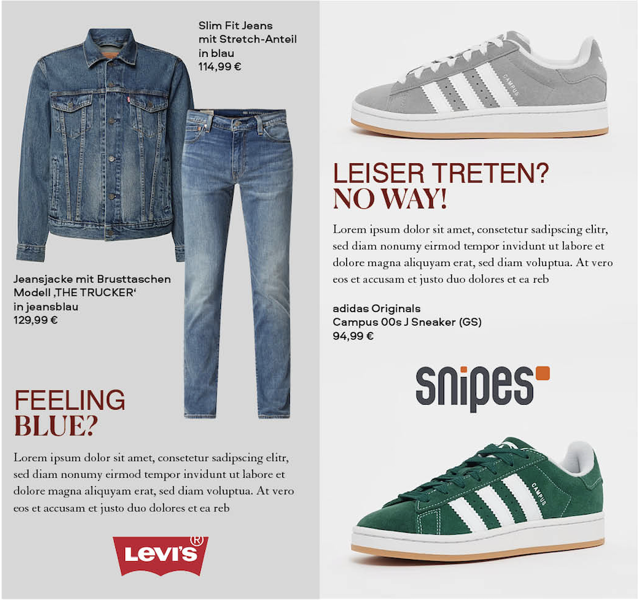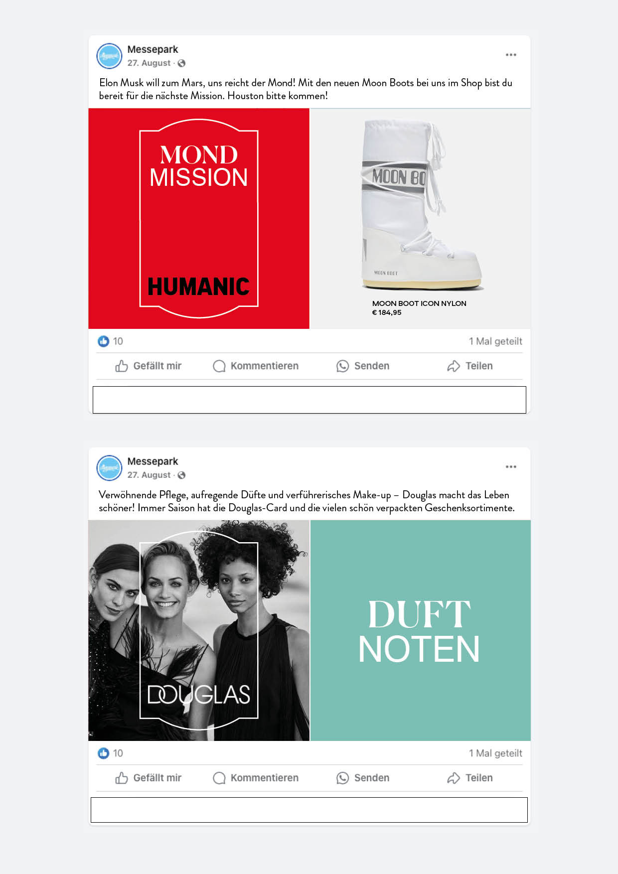 Nutzen Sie diese Chance, Ihr Produkt ansprechend und hochwertig in Szene zu setzen. Sie müssen uns dafür keine fertige Anzeige liefern – ein Logo, ein freigestelltes Produktbild und die Produktbezeichnung (inkl. Preis) genügen. Der Text und das Layout wird von der Messepark- Marketing gestaltet.